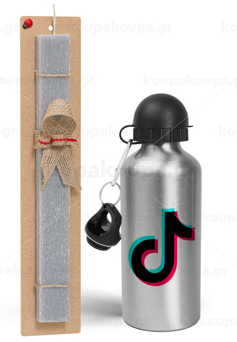 tik tok, Easter Set, metallic silver aluminum water bottle (500ml) & aromatic flat Easter candle (30cm) (GRAY)