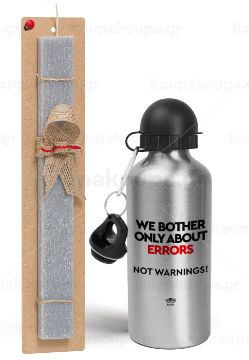We bother only about errors, not warnings, Easter Set, metallic silver aluminum water bottle (500ml) & aromatic flat Easter candle (30cm) (GRAY)
