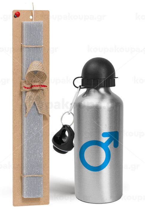 MALE, Easter Set, metallic silver aluminum water bottle (500ml) & aromatic flat Easter candle (30cm) (GRAY)