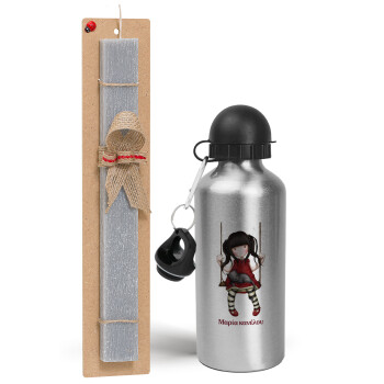 Santoro, Easter Set, metallic silver aluminum water bottle (500ml) & aromatic flat Easter candle (30cm) (GRAY)