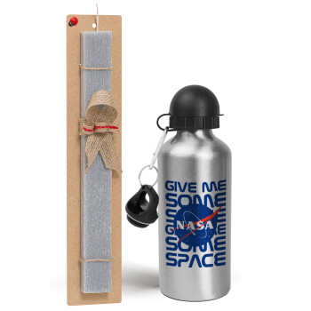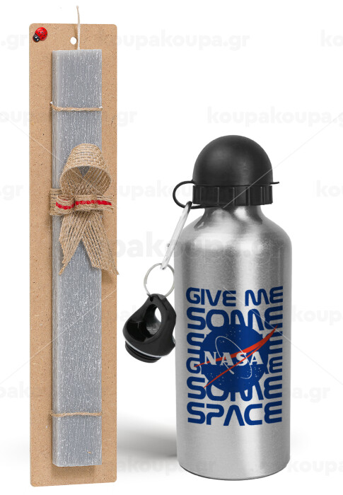 NASA give me some space, Easter Set, metallic silver aluminum water bottle (500ml) & aromatic flat Easter candle (30cm) (GRAY)