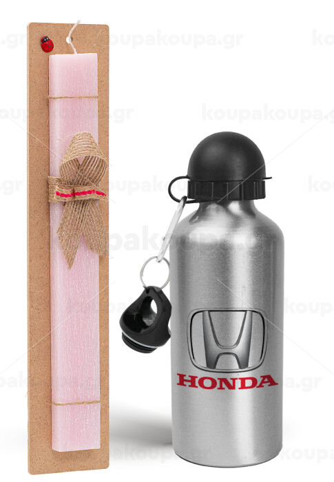 HONDA, Easter Set, metallic Silver aluminum water bottle (500ml) & scented flat Easter candle (30cm) (PINK)