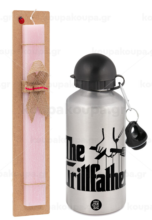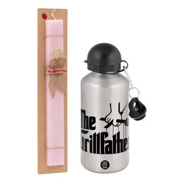 The Grill Father, Easter Set, metallic Silver aluminum water bottle (500ml) & scented flat Easter candle (30cm) (PINK)