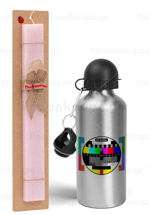 No signal, Easter Set, metallic Silver aluminum water bottle (500ml) & scented flat Easter candle (30cm) (PINK)