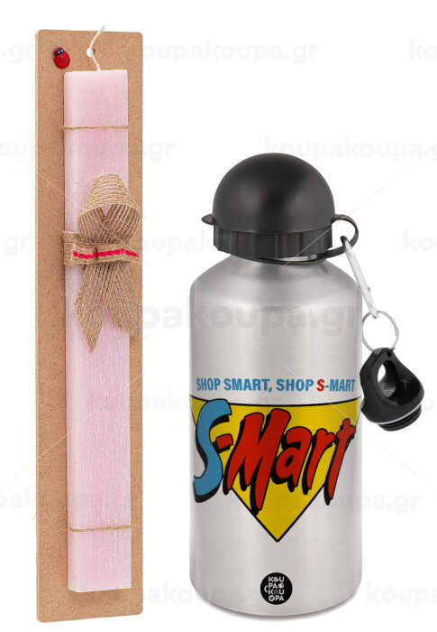 S-mart Evil Dead, Easter Set, metallic Silver aluminum water bottle (500ml) & scented flat Easter candle (30cm) (PINK)