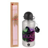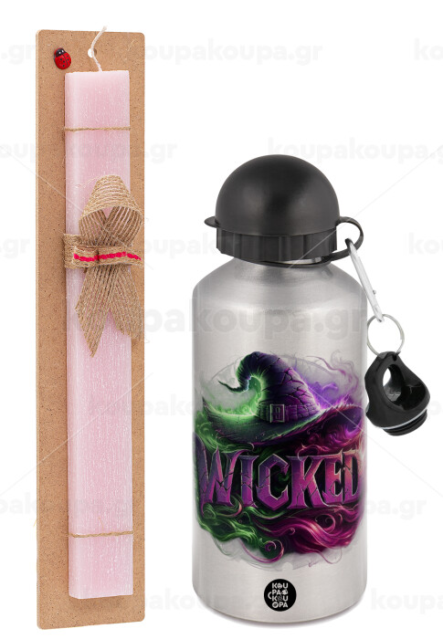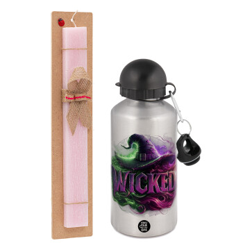 Wicked, Easter Set, metallic Silver aluminum water bottle (500ml) & scented flat Easter candle (30cm) (PINK)