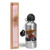 Ο Μπλέιζ και οι Φίλοι του, Easter Set, metallic Silver aluminum water bottle (500ml) & scented flat Easter candle (30cm) (PINK)