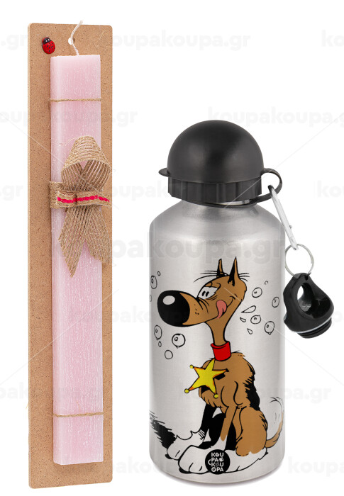 Rantanplan, Easter Set, metallic Silver aluminum water bottle (500ml) & scented flat Easter candle (30cm) (PINK)