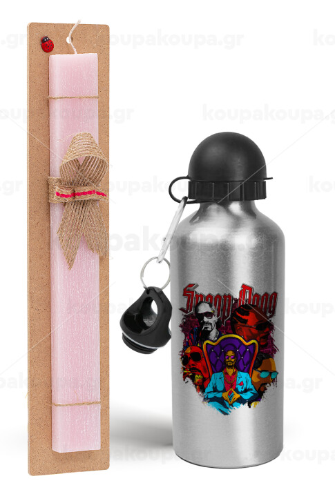 Snoop Dogg, Easter Set, metallic Silver aluminum water bottle (500ml) & scented flat Easter candle (30cm) (PINK)