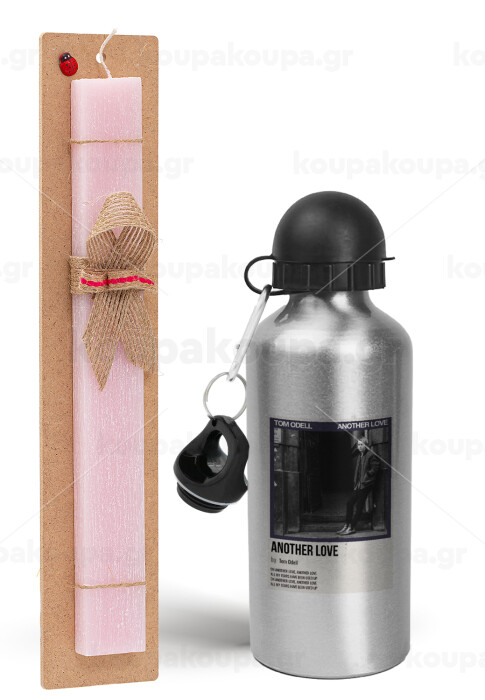 Tom Odell, another love, Easter Set, metallic Silver aluminum water bottle (500ml) & scented flat Easter candle (30cm) (PINK)
