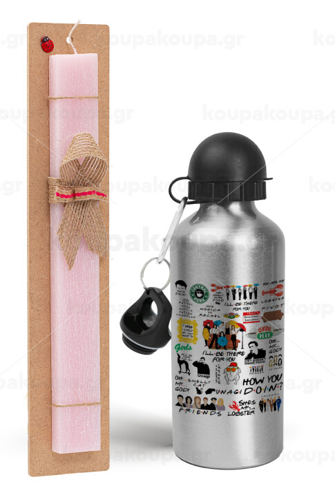 Friends, Easter Set, metallic Silver aluminum water bottle (500ml) & scented flat Easter candle (30cm) (PINK)