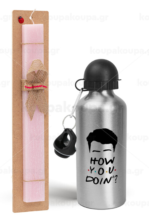 Friends how you doin?, Easter Set, metallic Silver aluminum water bottle (500ml) & scented flat Easter candle (30cm) (PINK)