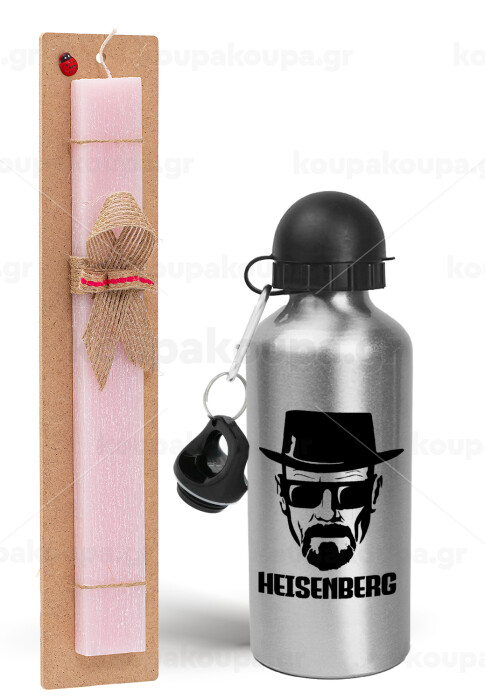Heisenberg breaking bad, Easter Set, metallic Silver aluminum water bottle (500ml) & scented flat Easter candle (30cm) (PINK)