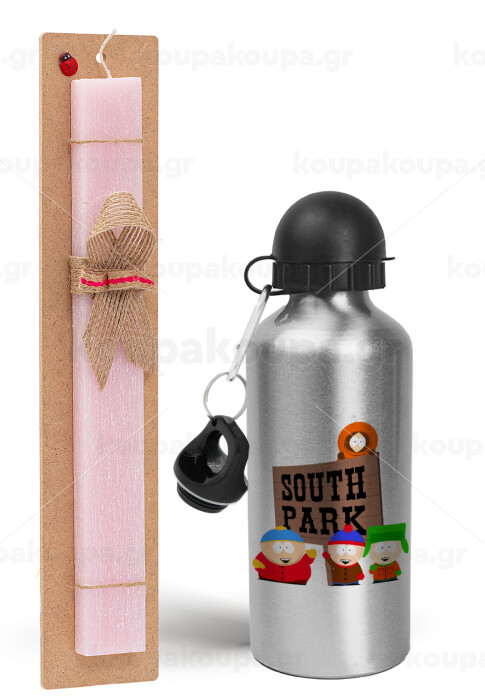 South Park, Easter Set, metallic Silver aluminum water bottle (500ml) & scented flat Easter candle (30cm) (PINK)