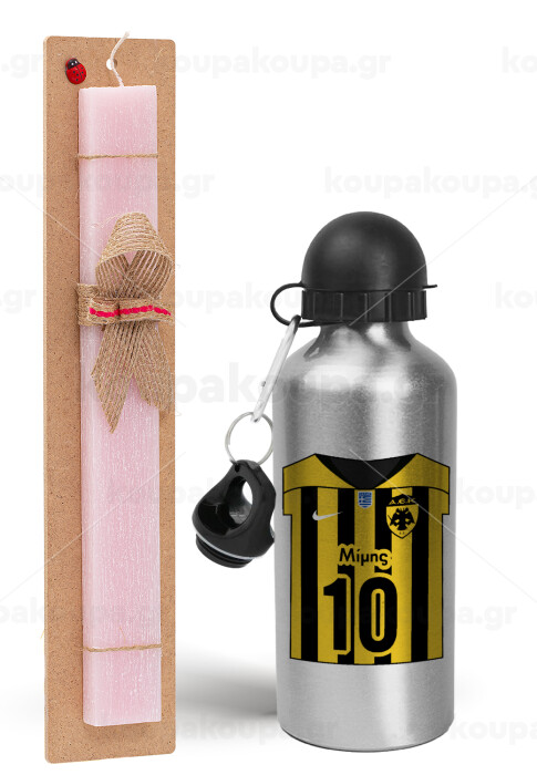 ΑΕΚ εμφάνιση, Easter Set, metallic Silver aluminum water bottle (500ml) & scented flat Easter candle (30cm) (PINK)