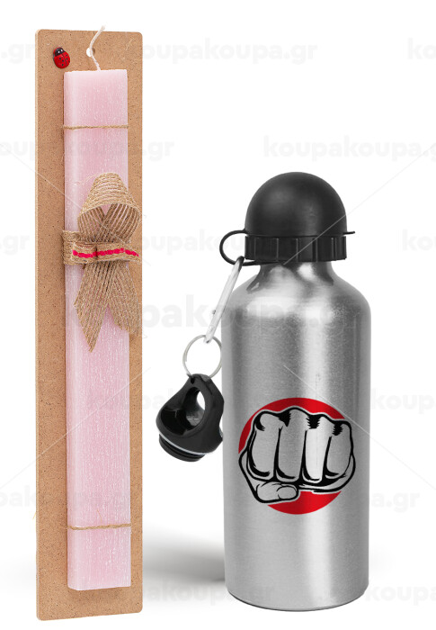 Punch, Easter Set, metallic Silver aluminum water bottle (500ml) & scented flat Easter candle (30cm) (PINK)