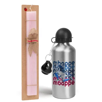 Kylian Mbappé, Easter Set, metallic Silver aluminum water bottle (500ml) & scented flat Easter candle (30cm) (PINK)