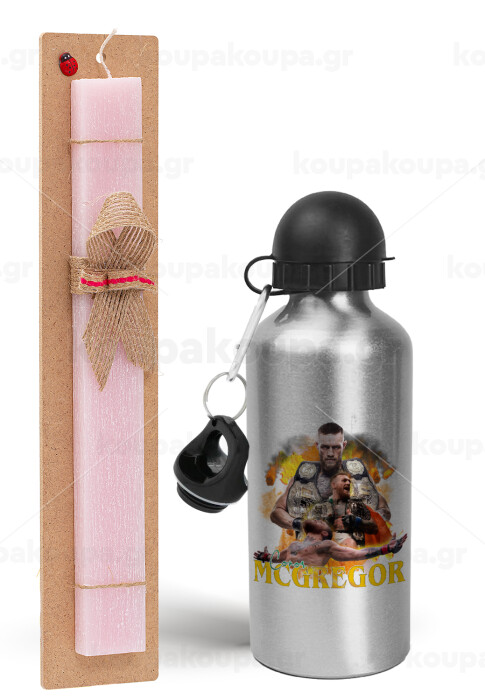 Conor McGregor Notorious, Easter Set, metallic Silver aluminum water bottle (500ml) & scented flat Easter candle (30cm) (PINK)