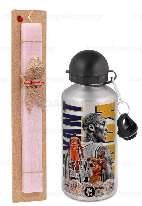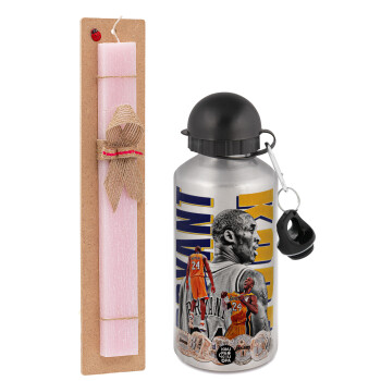 Kobe Bryant, Easter Set, metallic Silver aluminum water bottle (500ml) & scented flat Easter candle (30cm) (PINK)