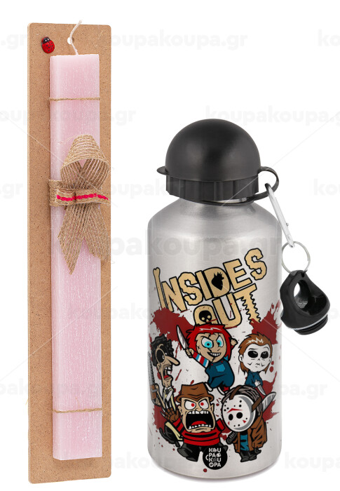 Halloween Inside out, Easter Set, metallic Silver aluminum water bottle (500ml) & scented flat Easter candle (30cm) (PINK)