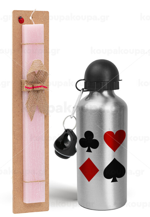 Τραπουλόχαρτα, Easter Set, metallic Silver aluminum water bottle (500ml) & scented flat Easter candle (30cm) (PINK)