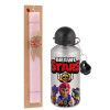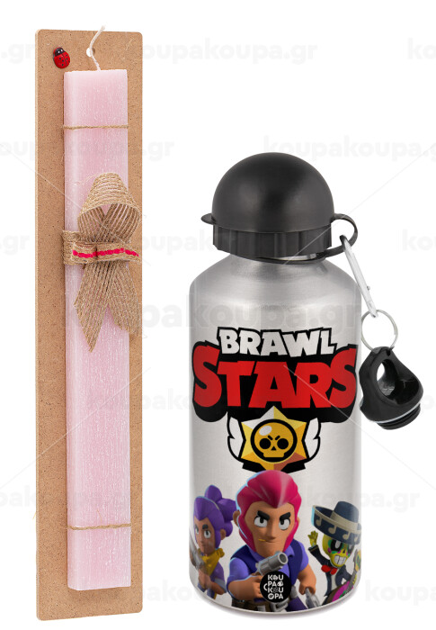 Brawl Stars Blue, Easter Set, metallic Silver aluminum water bottle (500ml) & scented flat Easter candle (30cm) (PINK)