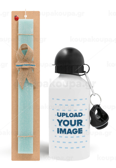 Upload your logo, Easter Set, metallic aluminum water bottle (500ml) & scented flat candle (30cm) (TURQUOISE)