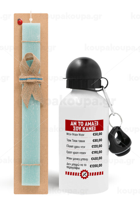 Annoying Noise in Car, Easter Set, metallic aluminum water bottle (500ml) & scented flat candle (30cm) (TURQUOISE)