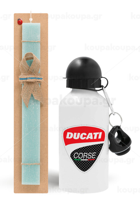 Ducati, Easter Set, metallic aluminum water bottle (500ml) & scented flat candle (30cm) (TURQUOISE)
