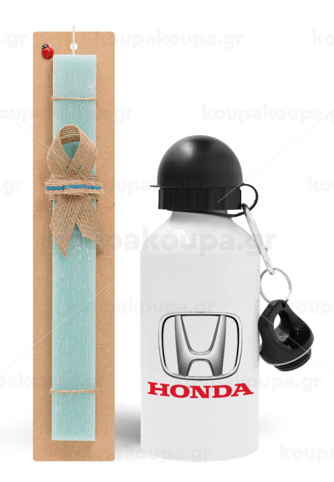 HONDA, Easter Set, metallic aluminum water bottle (500ml) & scented flat candle (30cm) (TURQUOISE)