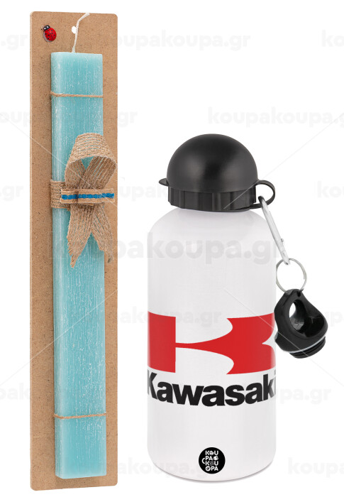 Kawasaki, Easter Set, metallic aluminum water bottle (500ml) & scented flat candle (30cm) (TURQUOISE)