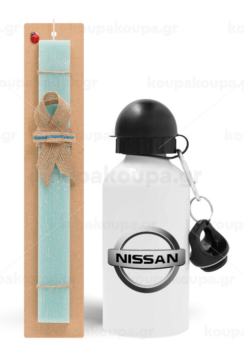 nissan, Easter Set, metallic aluminum water bottle (500ml) & scented flat candle (30cm) (TURQUOISE)