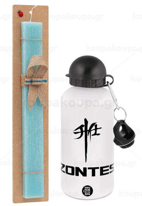 ZONTES, Easter Set, metallic aluminum water bottle (500ml) & scented flat candle (30cm) (TURQUOISE)