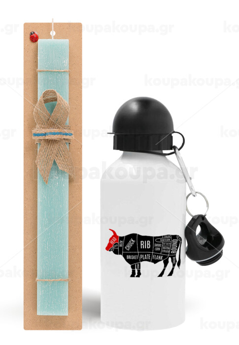 Diagrams for butcher shop, Easter Set, metallic aluminum water bottle (500ml) & scented flat candle (30cm) (TURQUOISE)