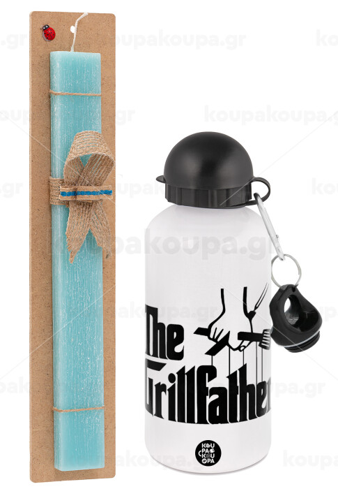 The Grill Father, Easter Set, metallic aluminum water bottle (500ml) & scented flat candle (30cm) (TURQUOISE)
