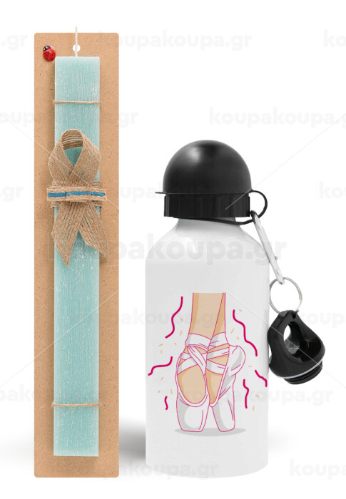 Πουεντ, Easter Set, metallic aluminum water bottle (500ml) & scented flat candle (30cm) (TURQUOISE)