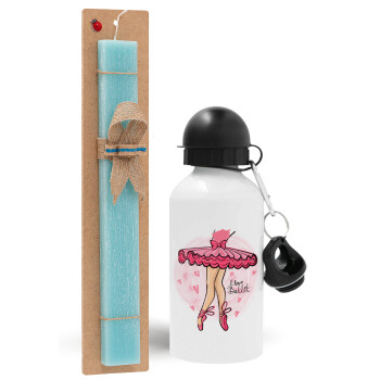 I Love Ballet, Easter Set, metallic aluminum water bottle (500ml) & scented flat candle (30cm) (TURQUOISE)