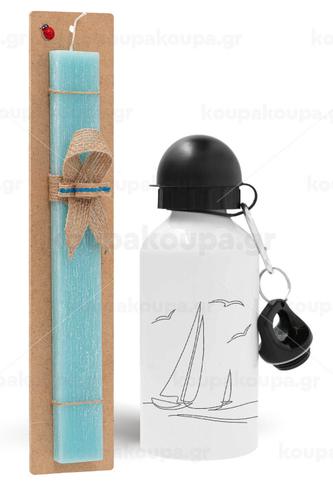 Sailing, Easter Set, metallic aluminum water bottle (500ml) & scented flat candle (30cm) (TURQUOISE)
