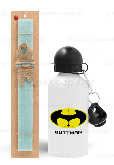 Buttman, Easter Set, metallic aluminum water bottle (500ml) & scented flat candle (30cm) (TURQUOISE)