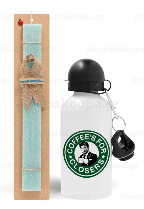 Coffee's for closers, Easter Set, metallic aluminum water bottle (500ml) & scented flat candle (30cm) (TURQUOISE)