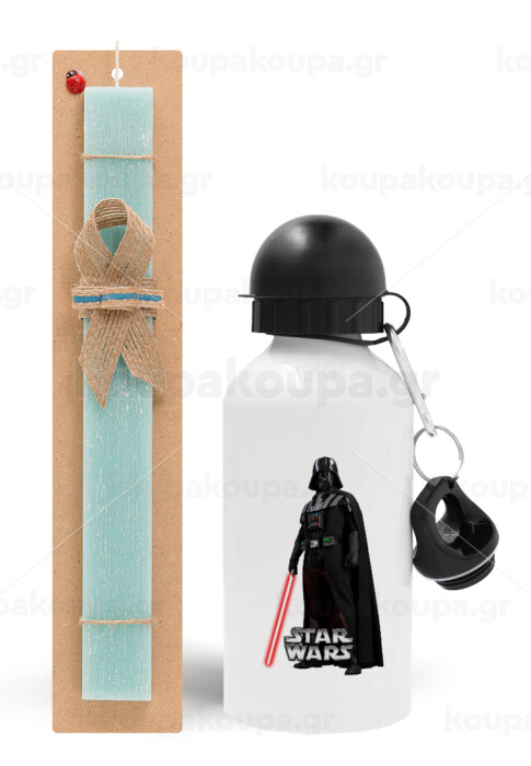 Darth vader, Easter Set, metallic aluminum water bottle (500ml) & scented flat candle (30cm) (TURQUOISE)