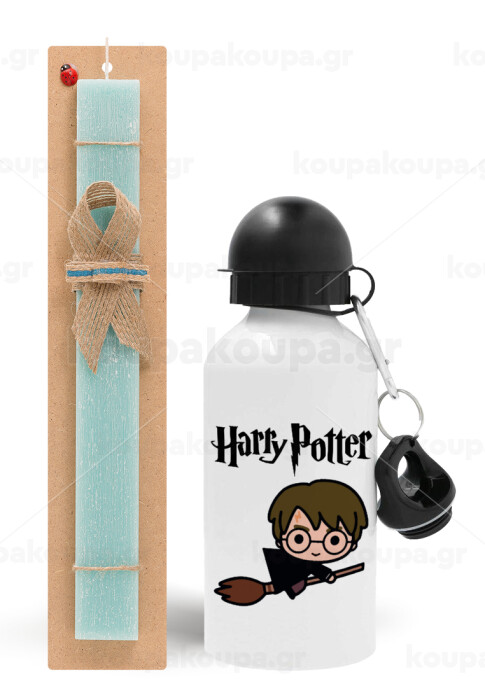 Harry potter kid, Easter Set, metallic aluminum water bottle (500ml) & scented flat candle (30cm) (TURQUOISE)