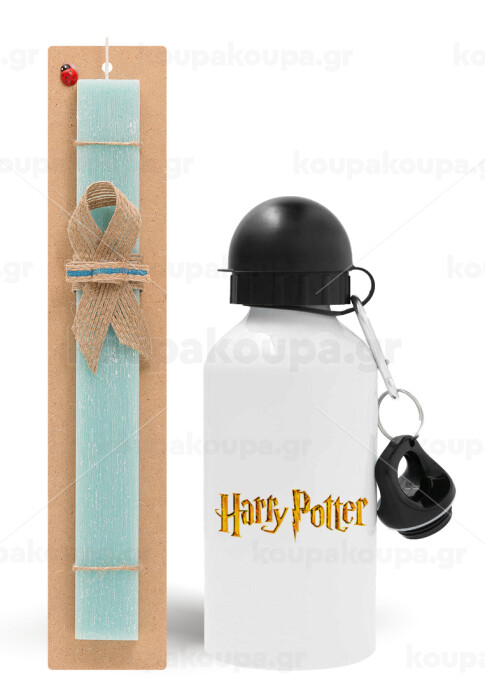 Harry potter movie, Easter Set, metallic aluminum water bottle (500ml) & scented flat candle (30cm) (TURQUOISE)