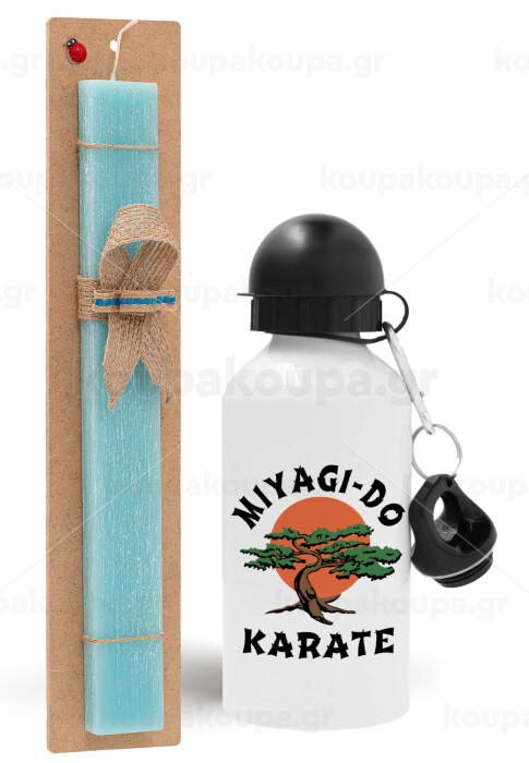 Miyagi-do karate, Easter Set, metallic aluminum water bottle (500ml) & scented flat candle (30cm) (TURQUOISE)