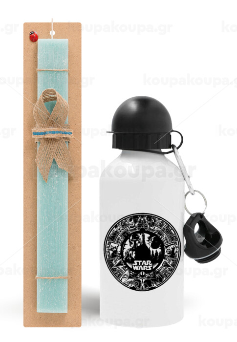 Star Wars Disk, Easter Set, metallic aluminum water bottle (500ml) & scented flat candle (30cm) (TURQUOISE)