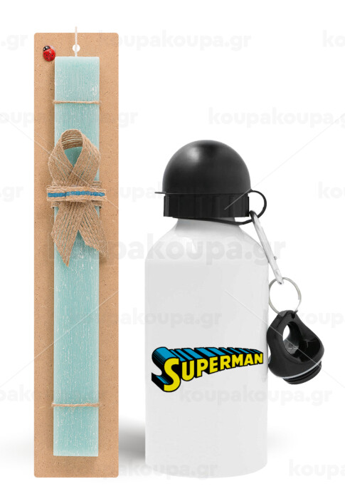 Superman vintage, Easter Set, metallic aluminum water bottle (500ml) & scented flat candle (30cm) (TURQUOISE)