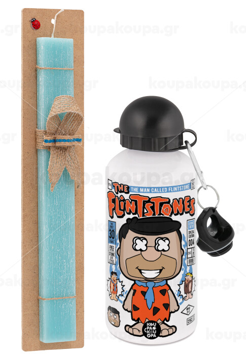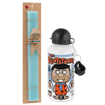 The flintstones, Easter Set, metallic aluminum water bottle (500ml) & scented flat candle (30cm) (TURQUOISE)