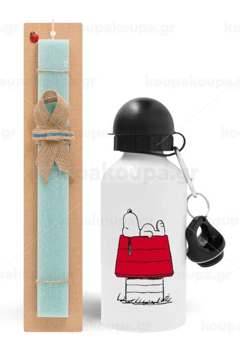 Το σπίτι του snoopy, Easter Set, metallic aluminum water bottle (500ml) & scented flat candle (30cm) (TURQUOISE)