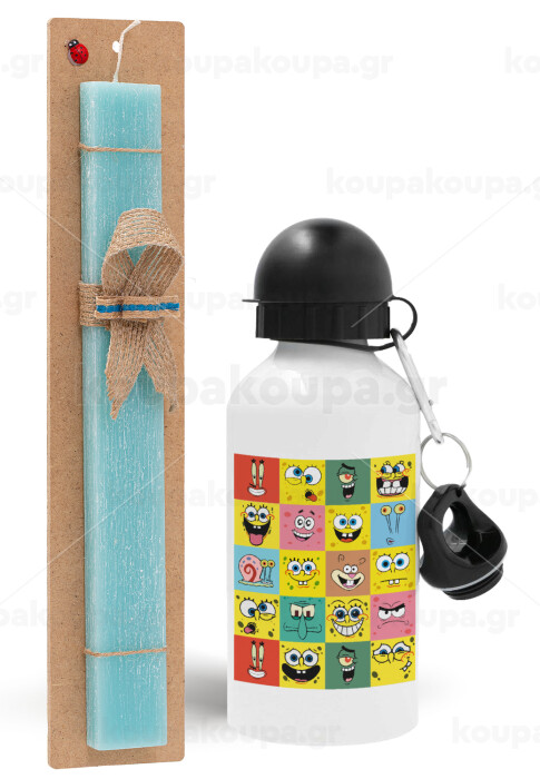 BOB spongebob and friends, Easter Set, metallic aluminum water bottle (500ml) & scented flat candle (30cm) (TURQUOISE)