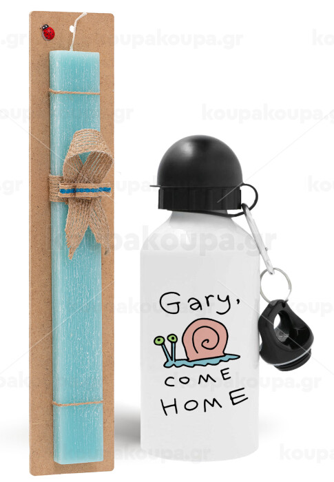 Gary come home, Easter Set, metallic aluminum water bottle (500ml) & scented flat candle (30cm) (TURQUOISE)